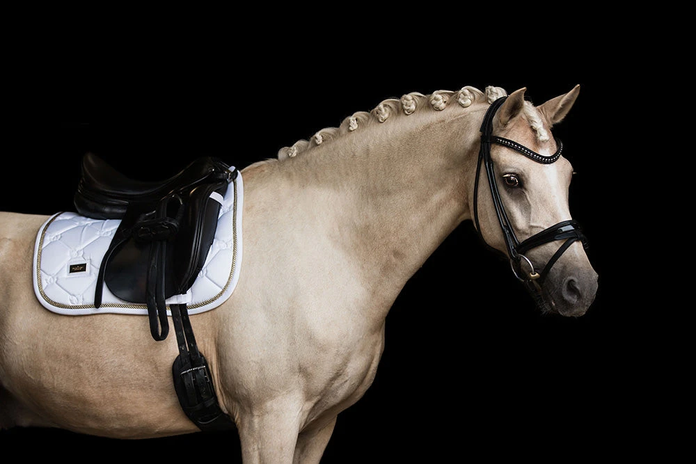 Luxurious details in gold that looks perfect with the ’White Perfection Gold’ saddle pad.