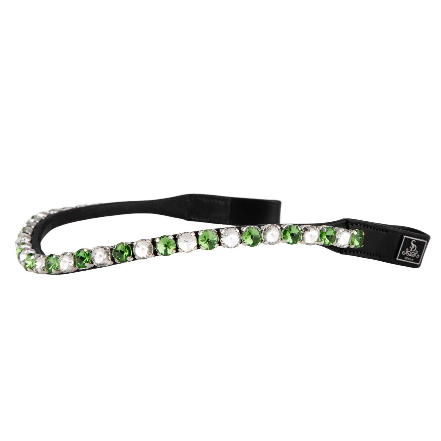 This browband is so beautiful and elegant! It has the most sparkling 10mm Rivoli crystals in a mix of pastel green and crystal.